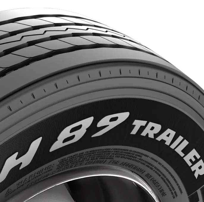 The H89 Trailer is developed for line-haul trailer applications where load stability, long tread life, and fuel efficiency are critical to overall fleet performance. Its advanced shallow-tread design helps lower rolling resistance while promoting even wear across extended highway journeys. Built to carry heavy loads with confidence, it offers dependable support for modern transport operations that demand consistency mile after mile. The reinforced casing also enhances retread potential, making it a practical solution for cost-conscious fleets.