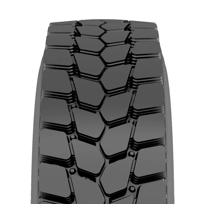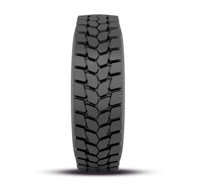 On/off-road drive tire with a directional tread design engineered for strong traction, durability, and consistent wear performance in aggressive service conditions.