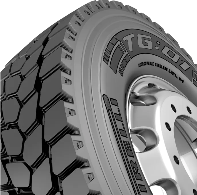 The TG:01 is an on/off-road drive tire engineered for aggressive service conditions where traction, durability, and pulling power are essential. Its directional tread pattern is designed to bite into loose surfaces while maintaining dependable performance on paved roads. Built for demanding commercial use, it supports heavy loads and consistent productivity in challenging environments. The TG:01 is made for fleets that operate where traction matters most.